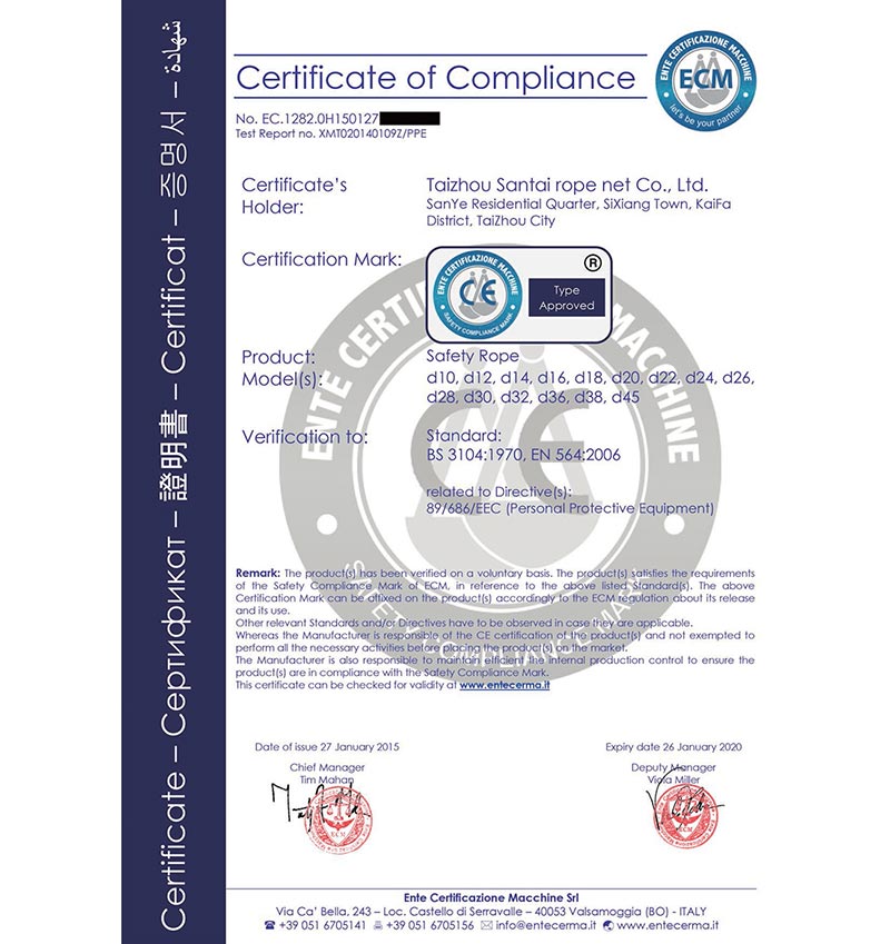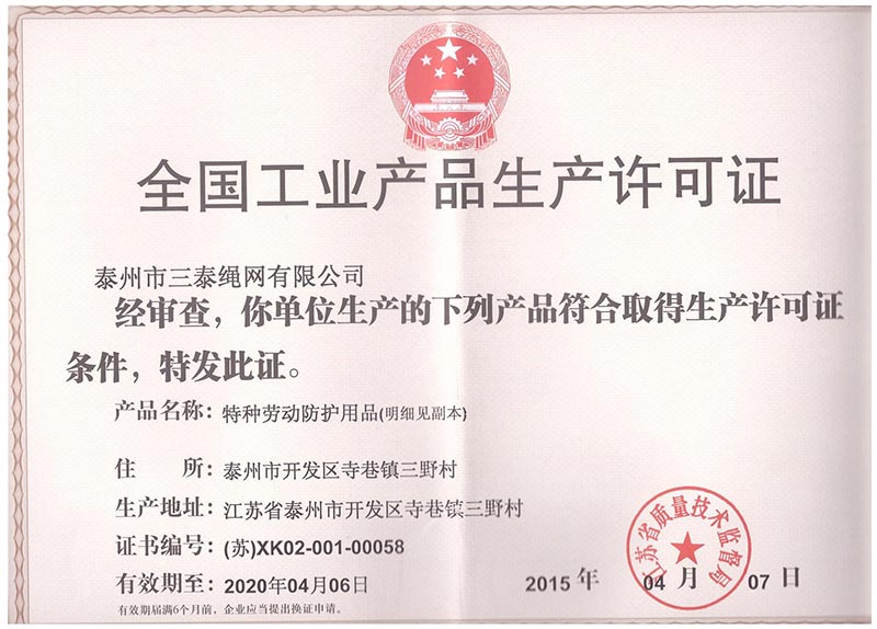泰州市三泰健康科技有限公司(原 泰州市三泰繩網有限公司),本公司成立于1988年12月22日,至今近30年的生產歷程。多年來的生產經驗,加之我們不斷的創(chuàng)新,已經建設成為集研制、開發(fā)、生產、銷售為一體的龍頭企業(yè)。公司生產線由捻線車間、制繩車間、織網車間、織帶車間、織(絞)繩車間、安全網組裝車間、安全帶組裝車間、檢驗室等組成。企業(yè)現有職工155人,企業(yè)管理人員6名,市場研發(fā)人員8名,專業(yè)質檢人員2名,......